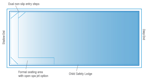Featuring dual benches, the Billabong Slimline offers versatility in placement, allowing you to position it close to boundaries or buildings without compromising on functionality or aesthetics. This flexibility ensures that your pool seamlessly integrates with your property’s design.
