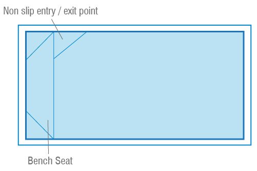 Either way, the Billabong Plunge Slimline offers the perfect solution. Designed with duel entry steps this pool can be positioned in just about any area, the bench seating area has been incorporated lengthways down the pool & across the entry, area to facilitate the open spa jet option that suits this pool so well.