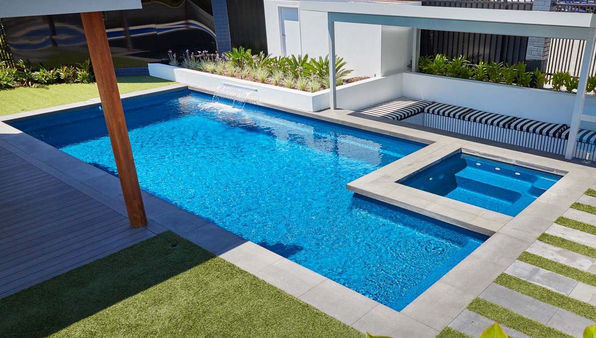 Check out one of our stunning installations of the Brooklyn 9.6m pool in the gorgeous Royal Jade Shimmer finish! This particular installation was completed in O’Connor for our Display Centre. The pool’s elegant design and shimmering finish have truly transformed the space into a serene retreat for your viewing.