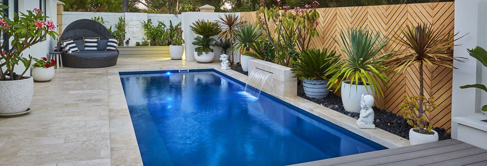 Perfect for compact backyards. Small fibreglass plunge pools and inground swimming pool designs can be tailored to fit into backyard space that larger pools simply couldn’t accommodate. Narrow side yards, courtyard settings, and oddly shaped blocks are all possibilities with the right pool design advice.